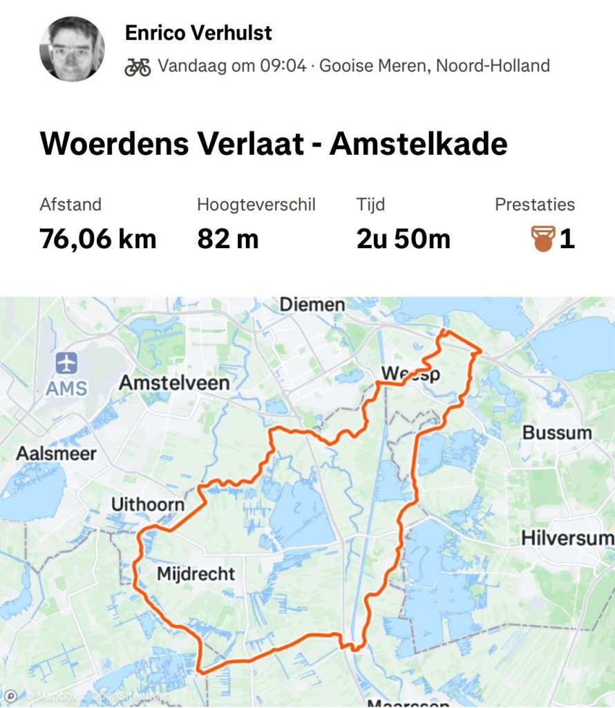 zondag 3 augustus 2025 – Amstelkade – 76 km – 5 rijders: Judith, Han, Marcel, Enrico & Michiel